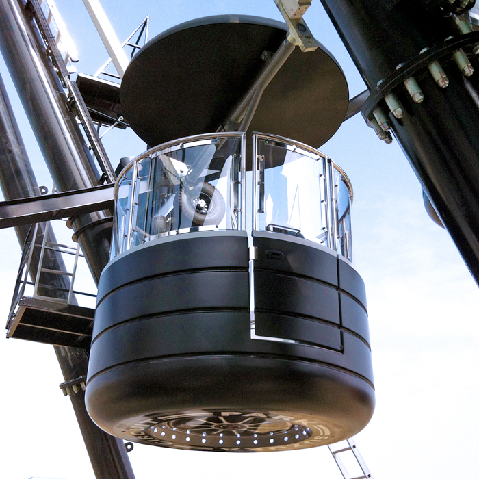 This is our most luxurious cabin, perfect for giant wheels. The cabin is spacious, comfortable (perfect for dinners suspended in the air) and offers passengers safety and protection against the wind, even at the maximum height. The surface is 90% glass, affording an incredible panoramic view. Fully customisable. The cabin is built from high-strength materials that do not have any special maintenance requirements. 8 seats.
