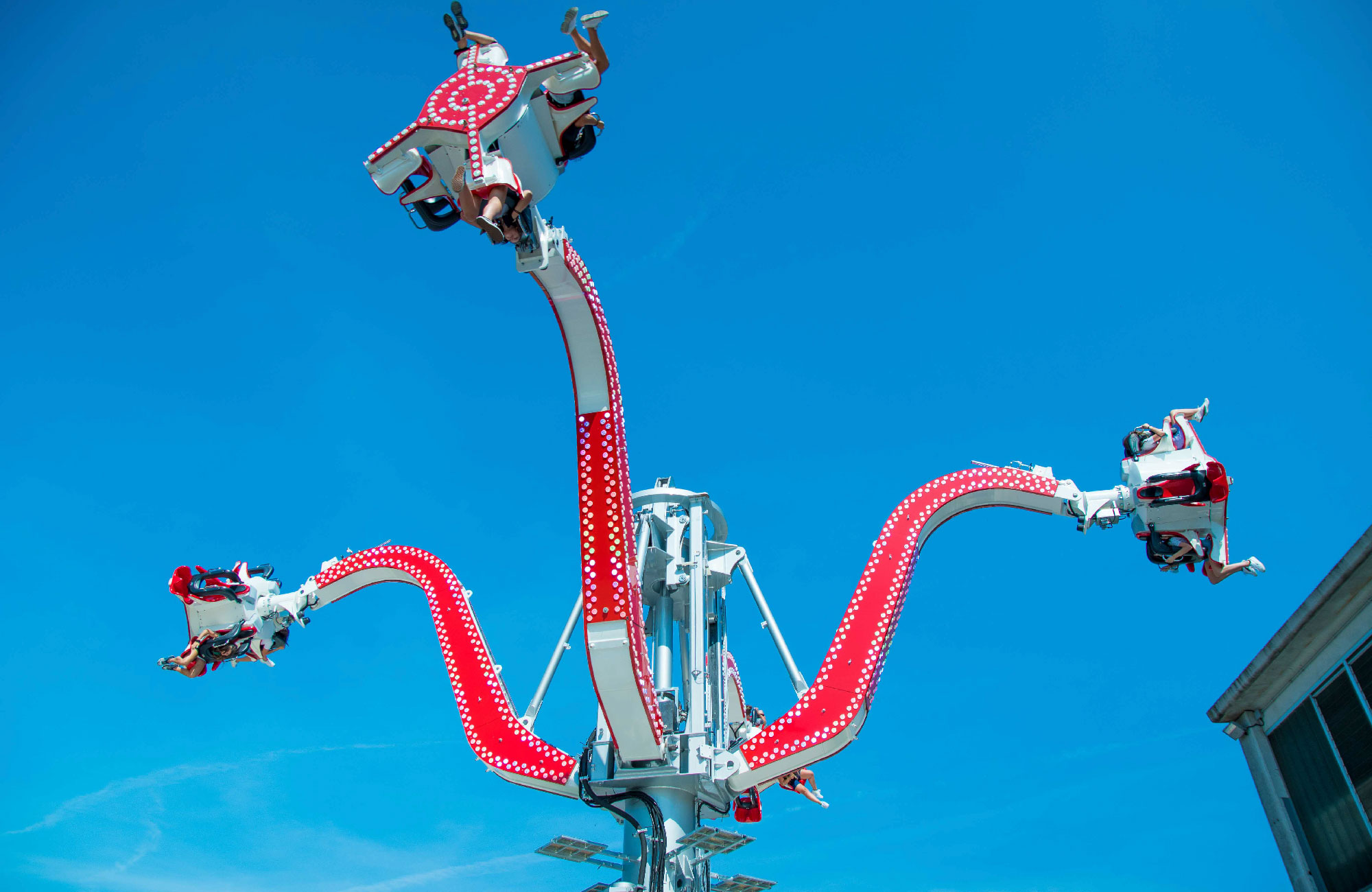 The sudden accelerated arm elevations and drops combined with rotating movements make this ride one of the best new proposals for both parks and traveling showmen.